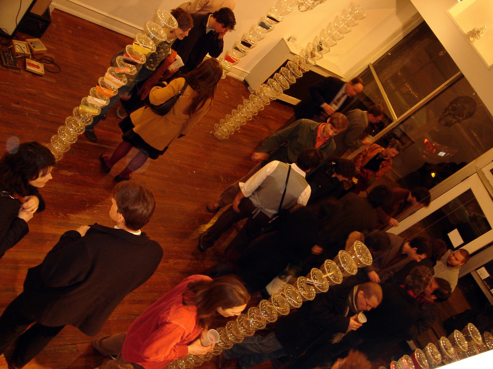 作品演示一个从平面图案延伸出的空间,也指精神层面,欲表明佛教所言之“轮回(Samara)”--一种不断迁徙与形变的存在。我凭藉于空间中可变动物件所承载的各式语汇,指出于无中作用能产生出足以停留在坚实表面上的实相,反映出“动”、“静”之变,唯有在客观与相对的条件下才能体现。作品揭示一简单的物理性,即当丝线从一个空间进入到另一空间时,因面对拉、扯的张力不同而被迫反应。