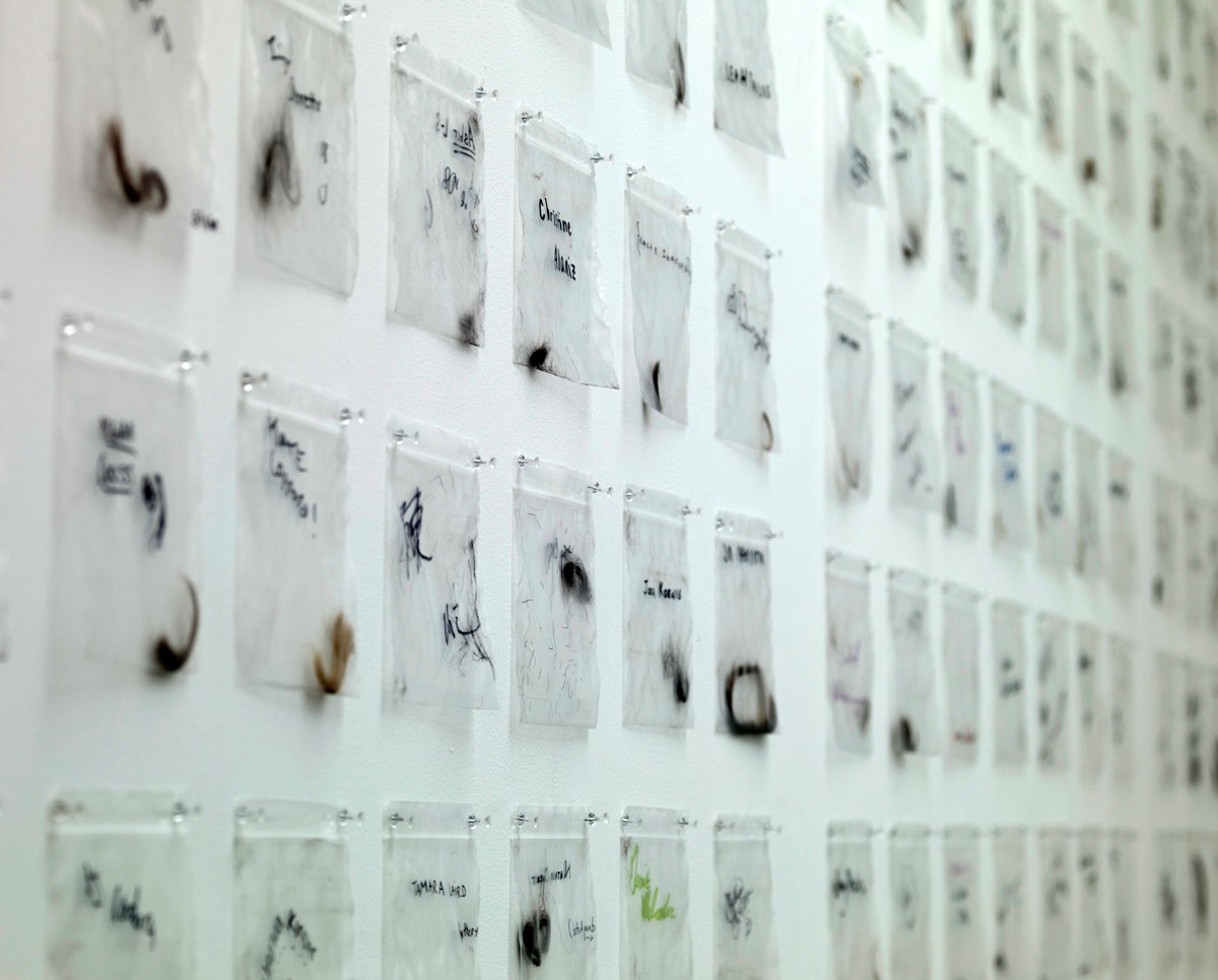 MATERIAL: Paint, sheetrock, zip-lock bags, visitors' DNA