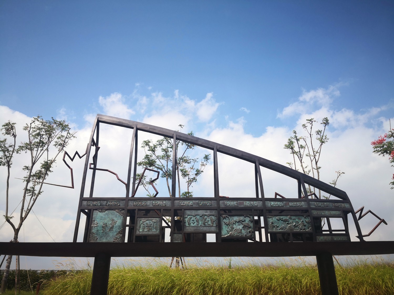 Boat of the Floating World is a boat-shaped sculpture, “floating”, on the bank of the Huangpu River. Standing by side of the busy river, the sculpture will create a contrast between motion and stillness, the imaginary and real space. The upper part of the sculpture is a boat house which represents a contemporary architectural structure in abstract form. Through this boat house, viewers can recall and imagine the old buildings in the docks of the Huangpu River of the past. The middle part of the work is in a linear form based on the shape of the Huangpu River. Symbolizing an “arrow of time”, it connects the past, the present and the future of the river.