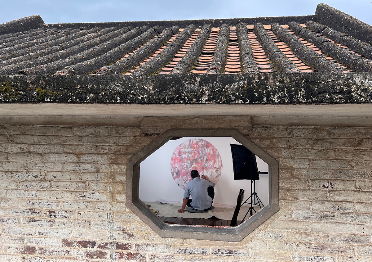 The artist has a resident creation in an old abandoned house in Ruxi Village, presenting his well-known series of works "Dust in Evolution". The artist has collected images about the villages in this traditional village in Nanhai. Most of these images come from historical documents, news photos, or the life and environment when the artist stayed in the village. Presented in its signature chiseled way on the interior walls of this old house. Chippings and scraps when carving the walls are collected in small transparent bags underneath each image. The images on the wall and the scraps in the small bag become a complete visual statement.